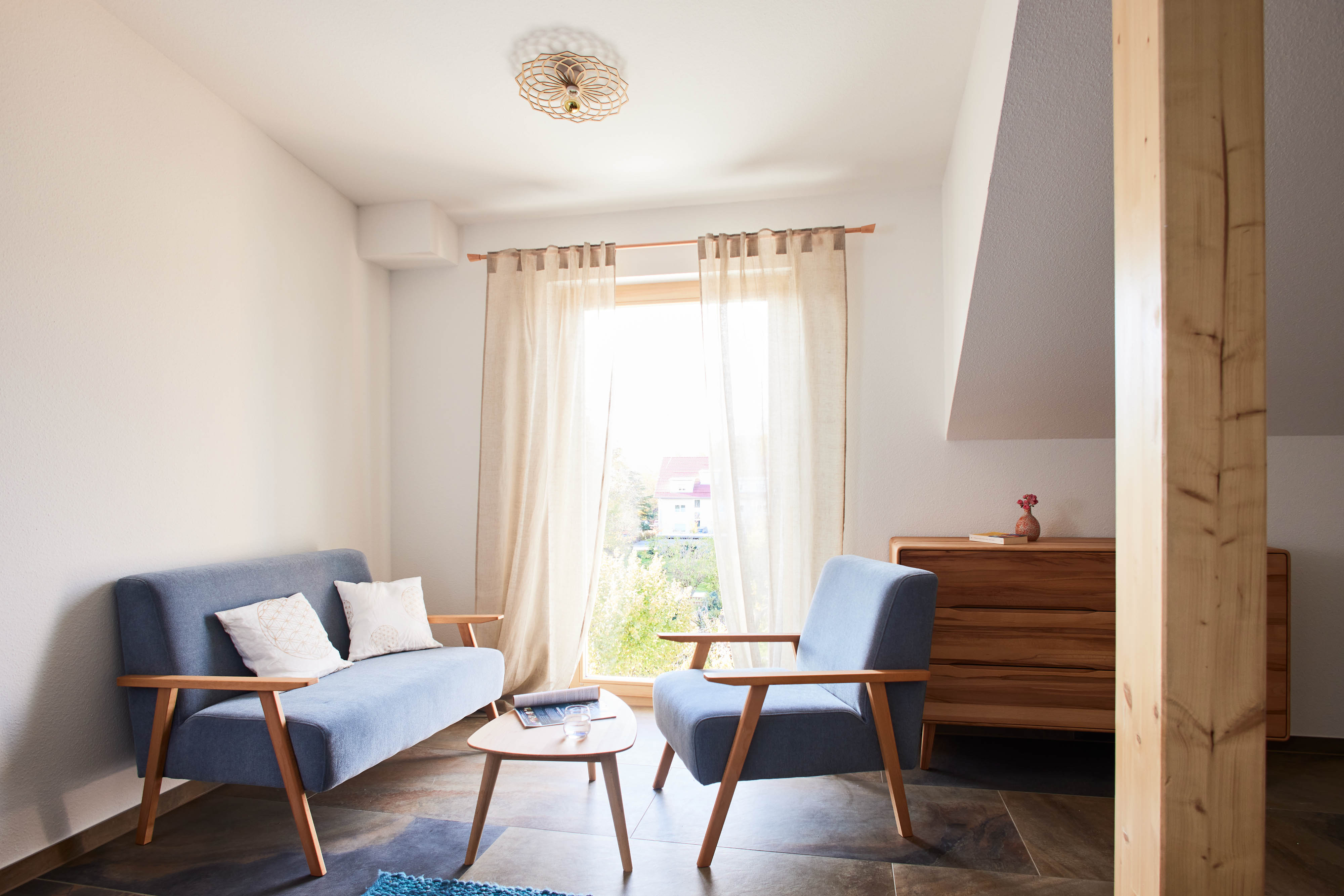 Wohnbereich mit hochwertigem Bettsofa – ausziehbar für 2 Personen