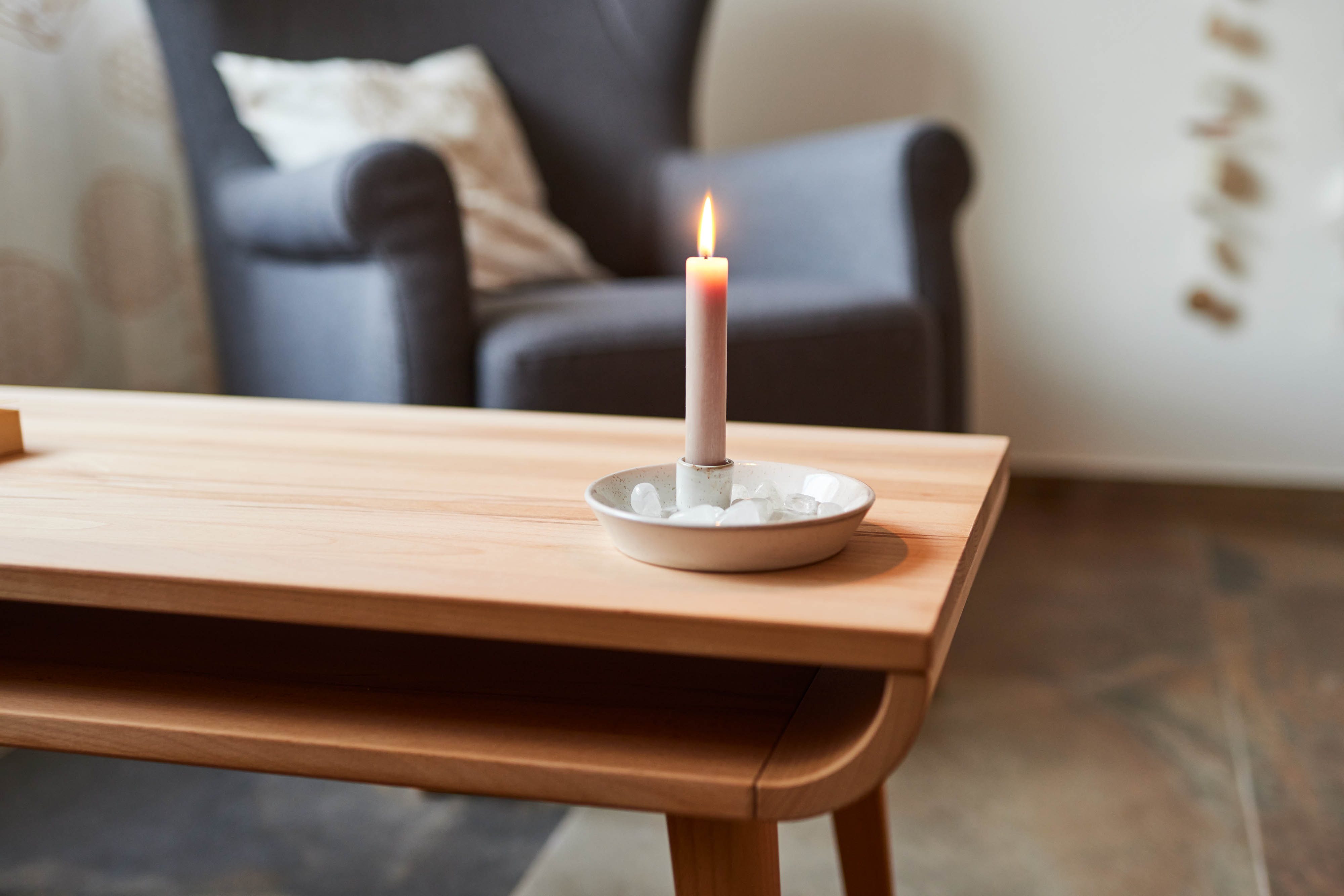 Wohnfläche 36 qm incl. Bad / Naturholzmöbel Buche, geölt; Bett 180 × 200 cm