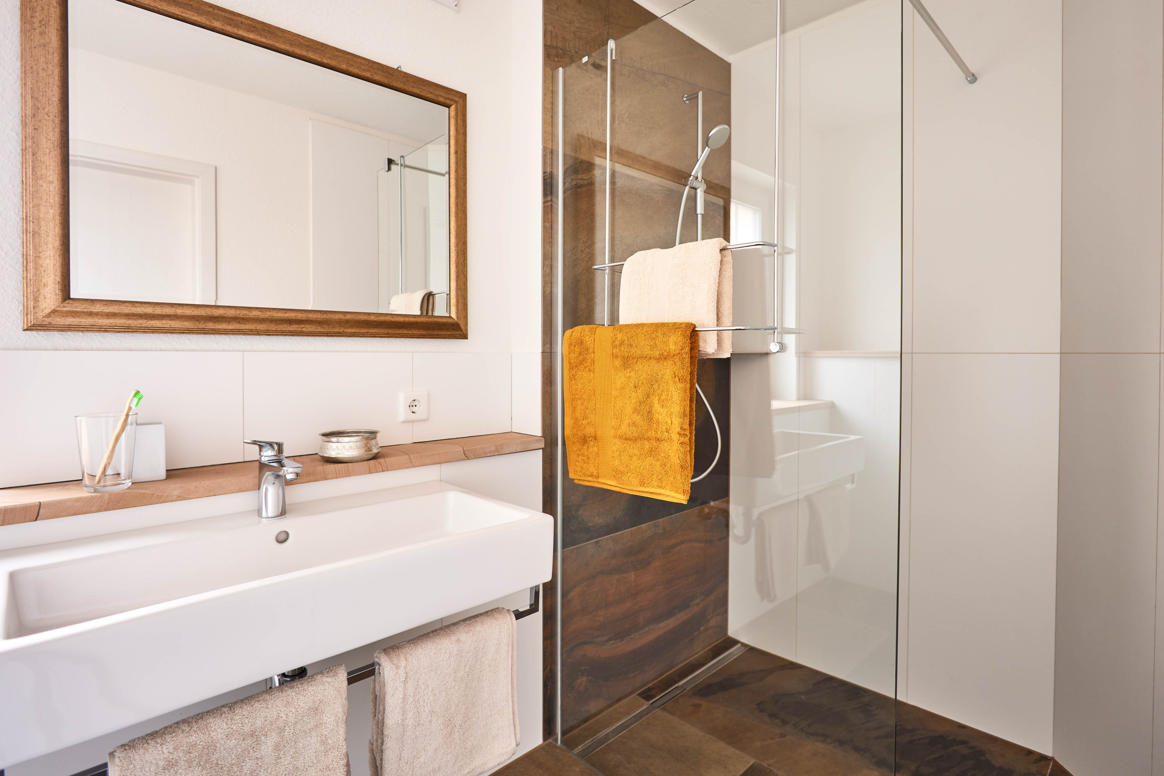 Harmonisches Bad mit geräumiger Dusche / Föhn