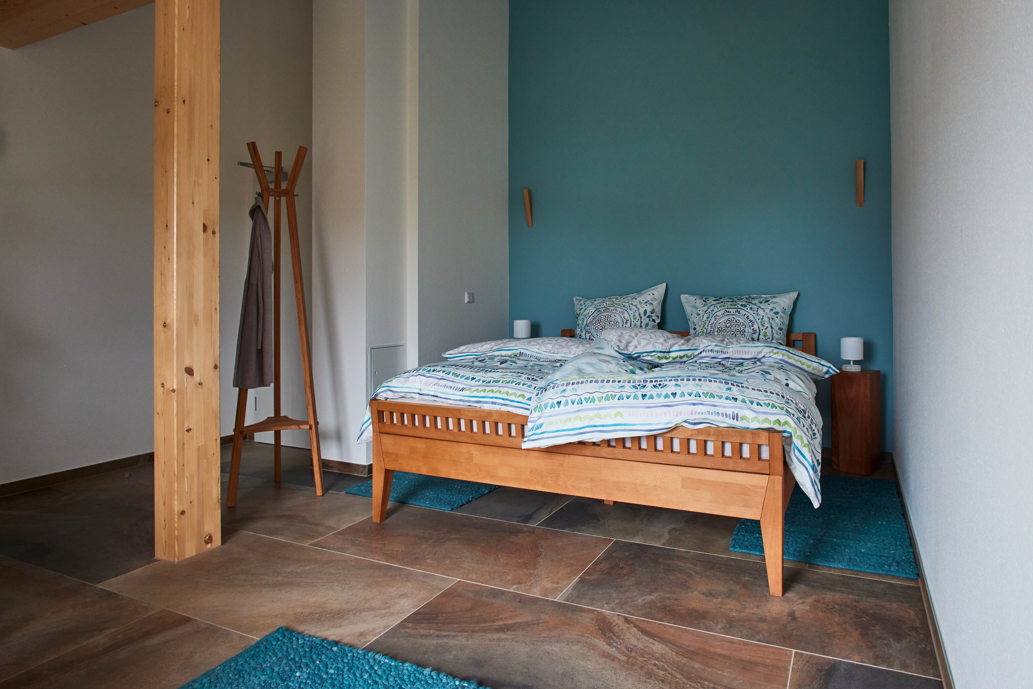 Wohnfläche 44 qm incl. Bad / Naturholzbett Erle, geölt 180 × 200 cm